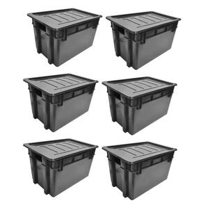 Kit 6 organizador multiuso caixa 60 lts preta com tampa Caixa multiuso fechada 60 litros black