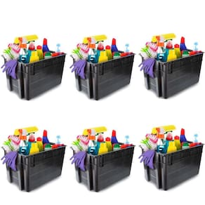 Kit 6 organizador multiuso telada reforçada 60l com tampa Caixa multiuso telada 60 litros black
