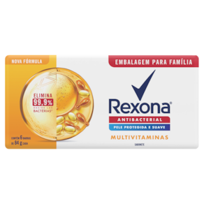 O Sabonete Rexona Antibacterial Multivitaminas foi desenvolvido para proporcionar proteção antibacteriana.Sua fórmula com glicerina, muito conhecida como um ingrediente hidratante para a pele, proporciona um toque suave no banho, além de promover uma sensação única de refrescância durante e após o banho, para você sentir suas energias recarregadas.