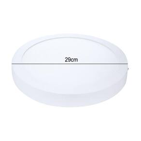 Informações técnicas: LED integrado Potência: 24W Temperatura: 4000K Emissão de luz neutra Medida: 29cm Forma: Redondo Lúmens: 1680 IRC: =70 Ângulo de abertura: 120 Material: Corpo em alumínio, difusor em vidro, corpo do driver em plástico Eficiência luminosa: 70lm/W Painel de sobrepor Vida útil: 25 mil horas L70 Pode ser ligado diretamente na rede elétrica em 127V ou 220V Não permite dimerização