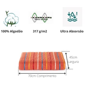 Por ser um atoalhado 100% Algodão possui uma ótima absorção e são macios para usar no dia a dia;