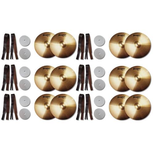 Kit 6 Par Prato 16 Fanfarra Dreamer Cymbals Latão Brilhante + 6 Par de Alça Com Feltro Para Prato Fanfarra Marcial Couro