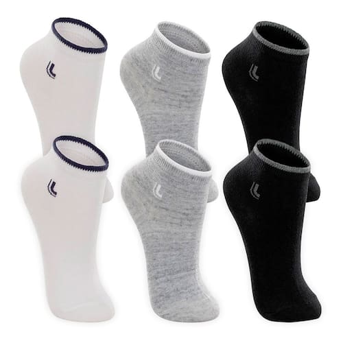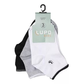 O kit vem com 6 pares de meias de cano curto nas numerações infantis, feitas em 70% algodão, 27% poliamida e 3% de outras fibras. Sua composição garante uma meia respirável, com calcanhar verdadeiro e punho super macio.