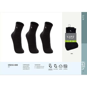 Kit 6 Pares Meias Adulto Cano Médio Esportiva Lupo - G - Preto