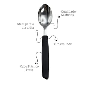 Kit com 6 colheres de mesa Cabene com cabo plástico preto