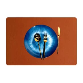 Kit 6 peças jogo americano mesa posta sousplat retangular Cor: caramelo Tamano: 43x30 Jogo americano couro retangular + porta copos
