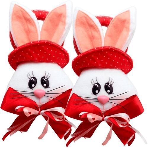 Características Gerais do Produto: - Material: Algodão; Tecido; Poliéster - Modelo: Enfeite Coelho Para Trinco - Cor: Branco; Vermelho - Dimensões aproximadas: Altura 23cm x Largura 13cm x Comprimento 6cm Garantia: - Garantia de fábrica - 1 Mês