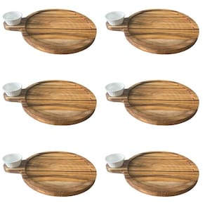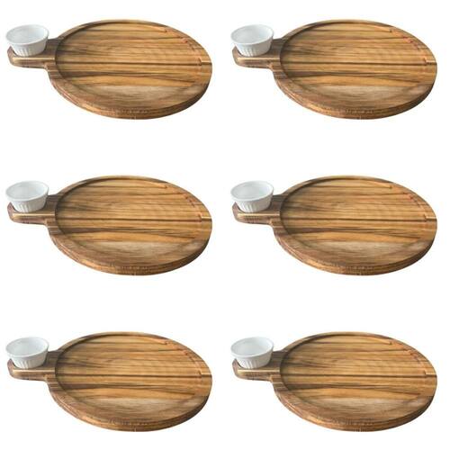 Kit 6 Petisqueira Teca 23cm Servir com Cabo e Ramekin 30ml Tábua Aperitivo Queijos.