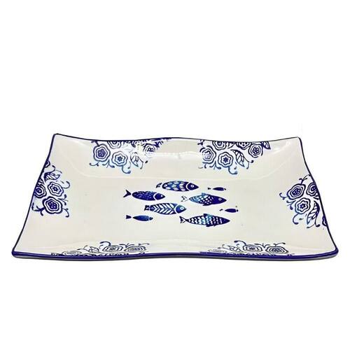 Características Gerais do Produto: - Material: Cerâmica - Modelo: Petisqueira Fundo Do Mar - Cor: Azul; Branco - Dimensões aproximadas: Altura 5cm X Largura 29cm X Comnto 17cm - Capacidade em litros: 550ml Garantia: - Garantia do site - 1 Mês