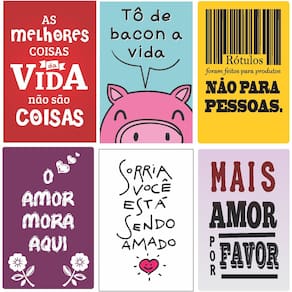 Kit 6 Placas Decorativas Frases Diversas Placas Decorativas 20x30x0,3 Melhores Coisas Placas Decorativas 20x30x0,3 Bacon a Vida Placas Decorativas 20x30x0,3 Rótulos Placas Decorativas 20x30x0,3 O amor mora aqui Placas Decorativas 20x30x0,3 Sorria Placas Decorativas 20x30x0,3 Mais Amor Especificações Técnicas: Desenvolvido em MDF de alta resistência; Estampa impressa em adesivo fosco Ótimo para decoração de vários ambientes; Produto entregue em sua casa montado e embalado pronto para uso. Entregue com Fita Dupla Face de ótima qualidade, não há necessidade de furar. Não recomendado expor diretamente à luz do sol. Limpeza somente com pano seco. Importante: Garantia contra defeitos de fabricação. Todos os produtos postados em até 3 dias úteis
