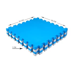 Itens inclusos: 6 placas de tatame EVA - (1,5 m²) Características: Cores: Kit enviado nas cores Azul e Cinza Material: EVA Anti-derrapante: Sim Atóxico: Sim (Não Prejudicial) Lavável: Sim Montagem: Bordas com encaixe rápido Dimensões: 50x50x1cm (C x L x A) por placa (10mm de espessura). A cada 4 placas forma 1m² Aplicações: Ideal para locais de pouco espaço físico; Decoração e proteção para áreas infantis; Decoração de ambientes como quartos, salas e brinquedotecas; Locais de prática de esporte com baixo impacto.