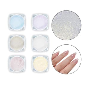 O Kit de Pó Sereia para decoração de unhas com seis cores claras e brilhantes, traz um visual mágico e cintilante, perfeito para quem quer um toque de brilho e delicadeza nas unhas. Cada pó possui uma textura fina e suave, sendo furta cor, refletindo a luz de forma encantadora, criando um efeito multidimensional com muito brilho Podem ser aplicados sobre esmaltes de diversas cores para criar efeitos de brilho, degrade ou até mesmo um acabamento espelhado, além disso, são compatíveis com todos os tipos de técnicas de alongamentos e perfeitos também para as unhas naturais. Com reflexos sutis de arco-íris, entregam um efeito cristalino e translúcido nas unhas, lembrando o brilho suave das pérolas, com um toque delicado e feminino, todos os tons são compostos por brilho holográfico, perfeitos, elegantes e glamouroso Brilho luxuoso nas unhas, perfeito para ocasiões especiais.