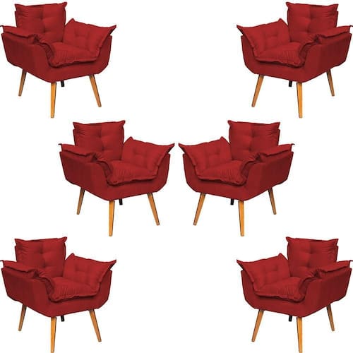 KIT 6 POLTRONAS ALICE SUEDE CORES PÉ TRAPÉZIO 30CM CASTANHO
