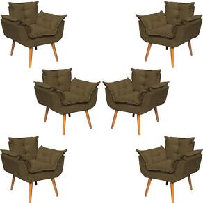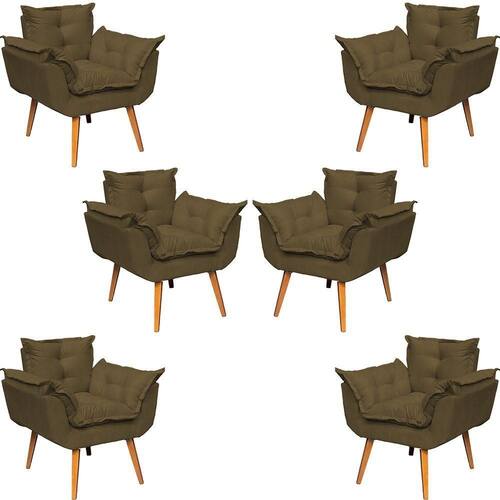 KIT 6 POLTRONAS ALICE SUEDE CORES PÉ TRAPÉZIO 30CM CASTANHO