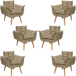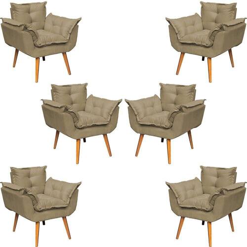 KIT 6 POLTRONAS ALICE SUEDE CORES PÉ TRAPÉZIO 30CM CASTANHO