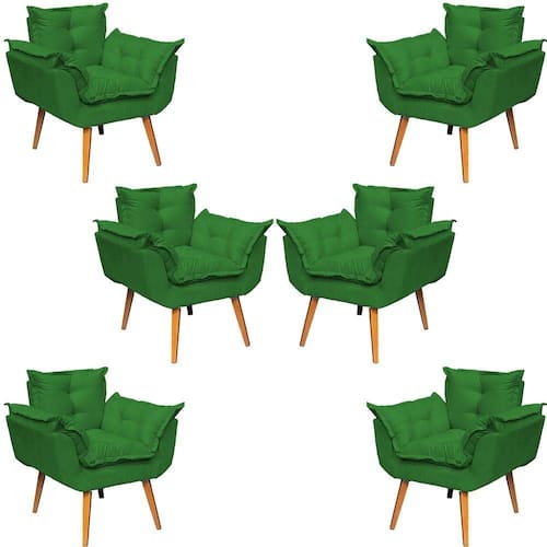 Kit 6 Poltronas Decorativa Para Sala Alice Suede Cores Pé Trapézio 30cm Castanho - Suede