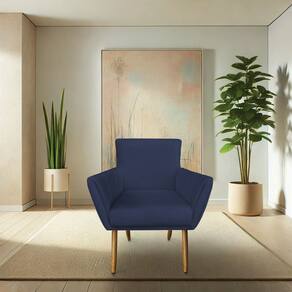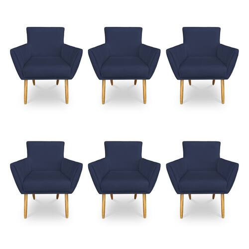 Kit 6 Poltronas Decorativa Leticia Suede Pés Palito Castanho - Pallazio - Azul Marinho