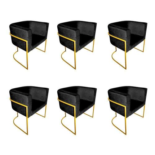 AS IMAGENS SÃO MERAMENTE ILUSTRATIVAS E PODEM SOFRER VARIAÇÕES DE COR E PEQUENOS DETALHES DE ACORDO COM O SEU MONITOR, ILUMINAÇÃO DO AMBIENTE E ATÉ MESMO A SUA PERCEPÇÃO VISUAL.Kit 6 Poltronas Decorativa Sala De Estar Base De Ferro Dourada Veludo Preto