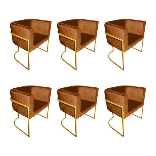 AS IMAGENS SÃO MERAMENTE ILUSTRATIVAS E PODEM SOFRER VARIAÇÕES DE COR E PEQUENOS DETALHES DE ACORDO COM O SEU MONITOR, ILUMINAÇÃO DO AMBIENTE E ATÉ MESMO A SUA PERCEPÇÃO VISUAL.Kit 6 Poltronas Decorativa Sala De Estar Base De Ferro Dourada Veludo Terracota