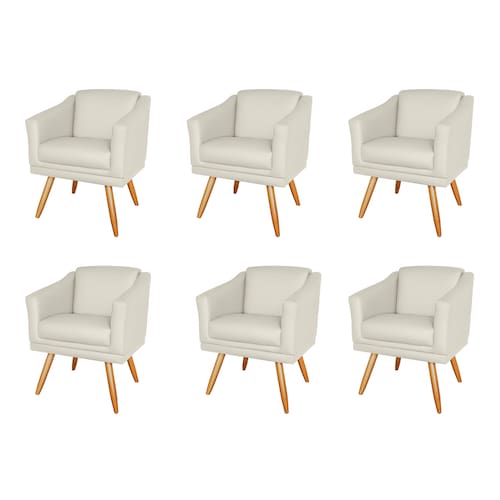 Kit 6 Poltronas Decorativa Sala Recepção Escritório Corino