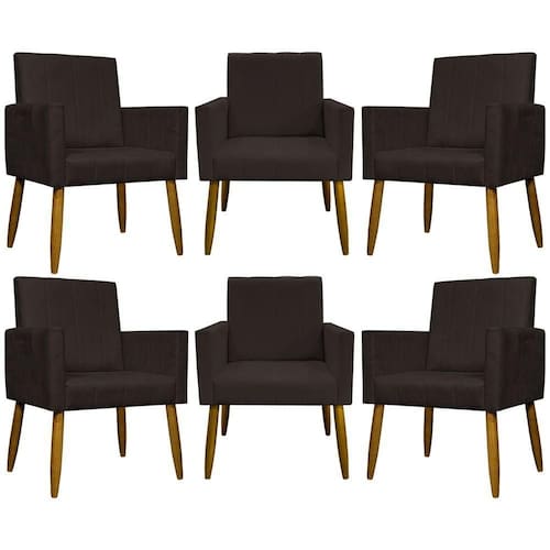 KIT 4 POLTRONAS MARI SUEDE CORES PÉ PALITO 30 CM CASTANHO