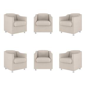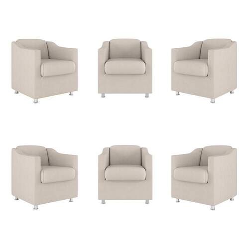 Kit 6 poltronas decorativas tilla consultório recepção sala Cor: bege Essa poltrona vai levar conforto, requinte e qualidade renovando o ambiente com estilo. Uma excelente opção para sua recepção, sala de espera, sala de estar, quarto e escritório, trazendo mais qualidade e conforto ao seu ambiente. com um design seguro e confortável, a poltrona se adapta em vários ambientes que trará ao ambiente um toque especial. Para quem indicamos nossas poltronas - para os amantes da leitura; - para trazer conforto na hora da amamentação; - para trazer sofisticação para sala de estar; - para trazer aconchego em seu quarto; - para proporcionar comodidade ao seu escritório ou home office. E claro... Para presentear quem mais amamos Produto suporta até 120kg de fábrica de 03 meses contra defeito de fabricação. Você receberá: Seis poltronas Instruções de montagem Produto é enviado montado, não necessitando de montagem. - pode haver alguma diferença de tonalidade entre a imagem e o produto, por conta do tratamento de imagens e a calibração de cores da sua tela. Modo de limpeza: - limpar com pano limpo e moderadamente úmido Especificações técnicas Travamento da estrutura com grampos em aço galvanizados e parafusos com flange de 5 mm; Acento sustentado por percintas elásticas; Madeira de reflorestamento eucalipto; Tecido suede. Dimensões Altura: 50 cm Largura: 50 cm Profundidade: 60 cm Peso: 15 kg