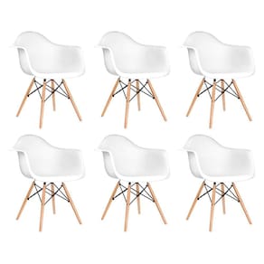 Kit 6 Poltronas Eames De Madeira Com Braço Daw Com Assento BrancoAs Cadeiras Charles Eames Daw - Com Braços ? Design são uma ótima escolha para fazer parte de cômodos como sala de jantar, área de recreação e lazer, entre outros locais. Elas são ideais para quem está em busca de conforto e um design único. Um diferencial importante destas cadeiras é que elas possuem uma base de madeira e o seu assento em polipropileno, sendo materiais que trazem mais resistência à cadeira e um toque de estilo a mais no modelo.- Essa cadeira suporta até 120 quilos.- Garantia de 3 meses contra defeitos de fabricação.- Assento em polipropileno e pés em madeira.LIMPEZAUtilize um pano macio levemente úmido.MEDIDASCor: BrancoAltura ? 79,5 cmLargura - 62 cmProfundidade - 62 cm*As imagens são meramente ilustrativas e podem sofrer variações de cor e pequenos detalhes de acordo com o seu monitor, iluminação do ambiente e até mesmo a sua percepção visual.