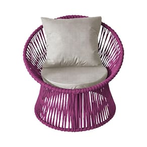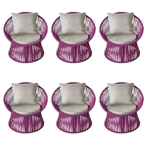 IMAGENS MERAMENTE ILUSTRATIVAS REALIZADO EDIÇÃO, PODENDO HAVER UMA PEQUENA VARIAÇÃO DE COR DEPENDENDO DE CADA TELA OU MONITOR.Kit 6 Poltronas Estofada Sol com Almofada em Corda NÃutica e Base em AlumÃnio Cinza/rosa