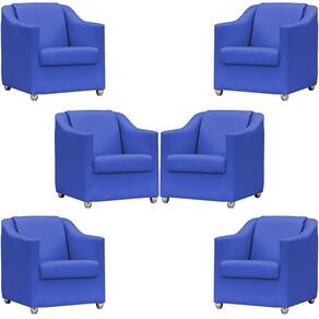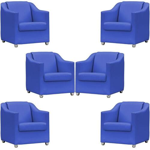 KIT 6 POLTRONAS MILA CORINO AZUL ROYAL PÉ DE PLÁSTICO CROMADO