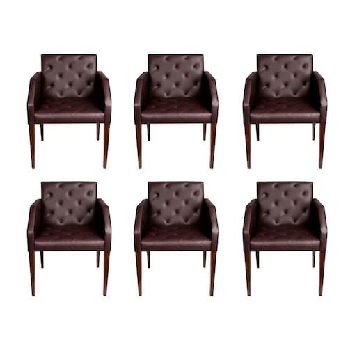 Kit 6 Poltronas Nina Costura Capitonê Em Tecido Sintético - Marrom - Cor: Marrom Kit 6 Poltronas Nina Costura Capitonê Em Tecido Sintético - Marrom Conforto e sofisticação agregados a um móvel, durabilidade e qualidade são adjetivos atribuídos a poltrona costura Capitonê sala espera escritório! Confeccionada em material sintético na cor preto, com estrutura em madeira e costura Capitonê sem botão, a poltrona costura Capitone sala espera escritório será a revolução na decoração da sua sala ou escritório. Ela é de altíssima qualidade e durabilidade, e vai garantir a melhoria no design do seu ambiente.Detalhes do Produto: Modelo: PoltronaTipo: CapitonêCor: MarromDimensões do Produto:Altura: 85cmLargura: 53cmComprimento: 60cmTodos os produtos vão embalados com total segurança.- Montagem será de responsabilidade do comprador. Produto de fácil montagem. Não nos responsabilizamos, no ato da entrega, por subir escadas/elevadores ou transporte por guincho em apartamentos. Eventuais despesas são de responsabilidade do comprador; - Confira antes de comprar as dimensões do produto.ATENÇÃOIMAGENS MERAMENTE ILUSTRATIVAS REALIZADO EDIÇÃO, PODENDO HAVER UMA PEQUENA VARIAÇÃO DE COR DEPENDENDO DE CADA TELA OU MONITOR.Kit 6 Poltronas Nina Costura Capitonà em Tecido SintÃtico - Marrom Marca: Rud House