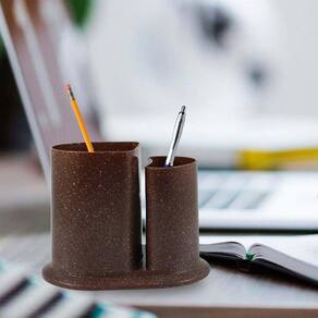 Porta Lápis Duo Green feito com 50% de fibra de coco e 50% de Plástico Premium PP , ecossustentável, resistente, com duas cavidades, espaço para cartão de visita, prático, uma excelente opção para organizar lápis, canetas, marcadores e outros acessórios na mesa de trabalho e/ou estudo. Imagens meramente ilustrativas. Marca: Bb Store Ean: 7908567023636