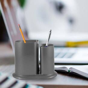 Porta Lápis Duo feito em Plástico Premium PP resistente, cores com pigmento de efeito metalizado, com duas cavidades, espaço para cartão de visita, prático, uma excelente opção para organizar lápis, canetas, marcadores e outros acessórios na mesa de trabalho e/ou estudo. Imagens meramente ilustrativas. Marca: Bb Store Ean: 7908567023452