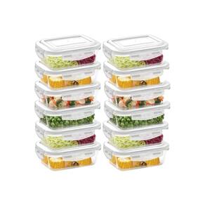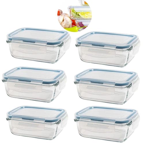 Design Retangular Inteligente: Seu formato otimiza o espaço na geladeira e na despensa, facilitando a organização e visualização dos conteúdos. kit 6 Potes de Vidro Hermético com Trava e Vedação 840 ML.