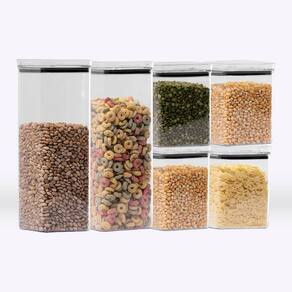 > O KIT CONTÉM- 4x Potes Hermético Quadrado 1L (Médio);- 2x Pote Hermético Quadrado 2,2L (Grande).