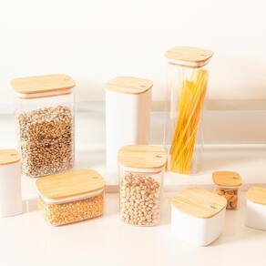 O kit com 6 potes herméticos keep é ideal para quem deseja uma solução completa de organização, trazendo cuidado com os alimentos e praticidade para o dia a dia. Com tampas de bambu, um material 100% renovável, cada pote adiciona sofisticação e sustentabilidade ao seu lar.