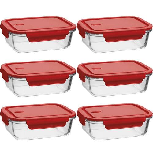 Conjunto 6 Potes Herméticos de Vidro Borossilicato 1,04L Retangulares Porta Mantimentos Vermelho Uz.
