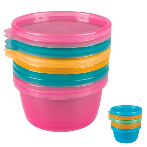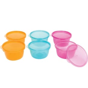 Kit 6 potinhos de papinha para congelar armazenar alimento comida bebe 250ml Cor: rosa/azul/laranja Os potes tem cores brilhantes, são translúcidos para que permite ver o conteúdo. Possui tampa para que o alimento possa ser transportado com segurança. A tampa deve ser fixada com firmeza para evitar vazamentos e manter o alimento fresco. Ideal para viagem e passeios. Informações do produto Contém 6 potes com tampas e cores diversas Os potes podem manchar em contato com alimentos com corante. A tampa deve ser fixada com firmeza. Pode ser Utilizado no micro-ondas ou no freezer. Remover a tampa antes de colocar no micro-ondas. Não usar o pote em fogão ou forno convencional. Não contém pvc. Medidas aproximada: 6 cm x 9 cm. Capacidade de 250 ml cada pote Cuidados lavar com água morna com sabão líquido neutro. Pode ser Utilizado em máquina lava-louças, no cesto superior. Enxaguem bem. Secar ao ar. Não ferver ou esterilizar.