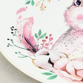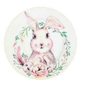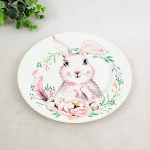 Kit 6 prato de sobremesa coelho rosa 19cm mesa posta páscoa