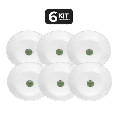 Prato de vidro temperado opaline branco indicado para as principais refeições do dia.