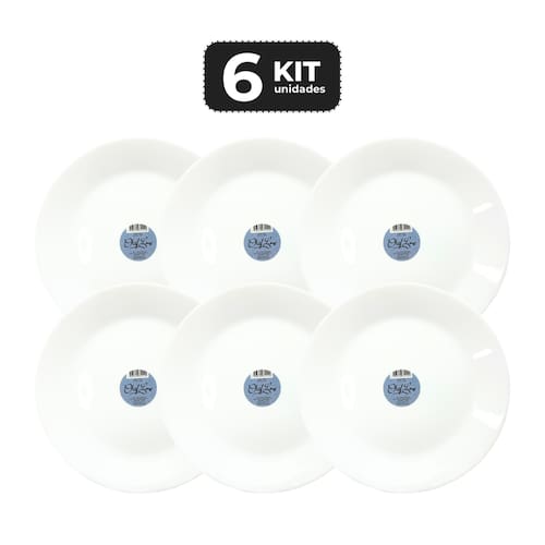 Prato de vidro temperado opaline branco indicado para as principais refeições do dia.