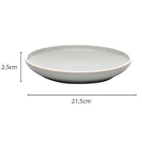 Dimensões de cada prato: 21,5cm (D) x 2,5cm (A);