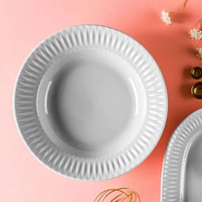 Um conjunto de seis pratos projetado para proporcionar um toque de elegância às suas refeições. Porcelana de alta qualidade, conhecida por sua durabilidade e acabamento refinado, cada prato tem um diâmetro de 23cm, ideal para servir sopas, massas e pratos principais com molhos. O padrão "Diamante" refere-se ao detalhe texturizado que cria um efeito visual elegante, imitando o brilho e a sofisticação dos diamantes. Adequado para uso diário ou ocasiões especiais, proporcionando uma apresentação atraente dos alimentos na sua mesa posta.