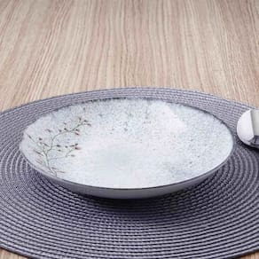 O conjunto de pratos fundos Floralis possui 21cm de diâmetro cada, ideais para servir sopas, caldos, massas, risotos e outras receitas com molho, oferecendo praticidade sem abrir mão do bom gosto. O destaque fica por conta do delicado desenho floral em tons suaves de rosa e verde, que remete à leveza da natureza e imprime um toque romântico e acolhedor à mesa. O fundo levemente granulado em tons de cinza claro acrescenta profundidade e modernidade ao visual, criando um contraste sutil e elegante. A durabilidade do material garante que as peças mantenham sua beleza mesmo com o uso frequente, podem ainda serem levados a lava louças e ao micro-ondas tornando seu uso mais prático e funcional.