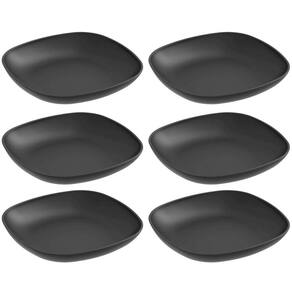 Kit 6 Pratos para Sobremesa Quadrados 17cm Preto Coza Plástico Essential.