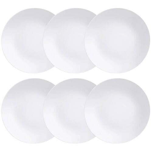 Garantia: 90 dias / Peso total: 3,138kg / Cor predominante: branco / Referência: 7794463424086; Dimensões de cada prato: 25cm (D) x 2,4cm (A); Conteúdo: 6 pratos rasos; Material: porcelana.
