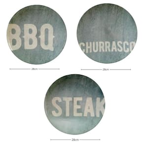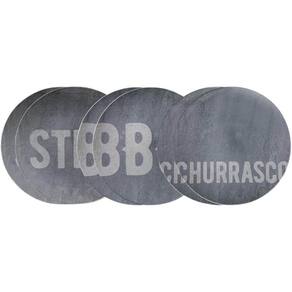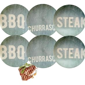 Kit 6 Pratos Rasos Tramontina Churrasco Stone Porcelana 28cm Temático BBQ Steak.