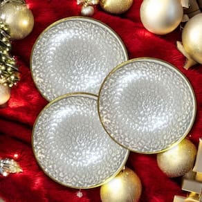Kit 6 Pratos Redondo Acrílico Borda Dourado 25Cm Natal Festa