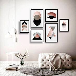 Composições de quadros para decorar ambientes têm sido cada vez mais utilizadas por arquitetos e amantes da decoração. Ao utilizar quadros do mesmo tom, que possuam correlação e que ornem entre si, é possível personalizar e dar um toque único a um determinado ambiente. Essa composição possui 6 quadros, nos seguintes tamanhos: