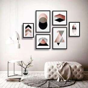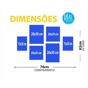 Composições de quadros para decorar ambientes têm sido cada vez mais utilizadas por arquitetos e amantes da decoração. Ao utilizar quadros do mesmo tom, que possuam correlação e que ornem entre si, é possível personalizar e dar um toque único a um determinado ambiente. Essa composição possui 6 quadros, nos seguintes tamanhos: