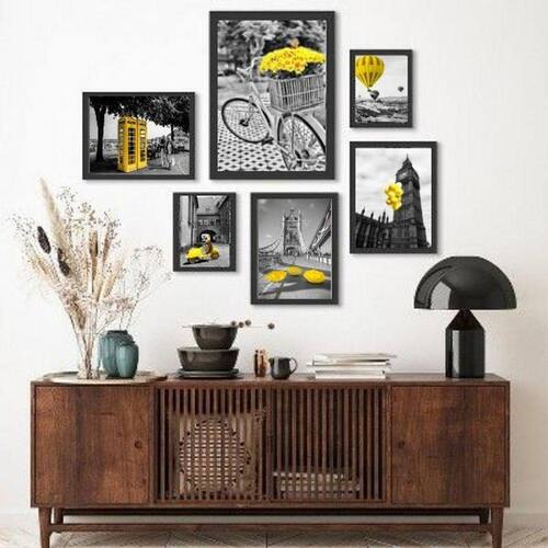 Não deixe suas paredes vazias, adquira agora mesmo o Kit Composição 6 Quadros Fotos Detalhes Amarelos - Com Vidro e transforme sua decoração com muito estilo e personalidade.